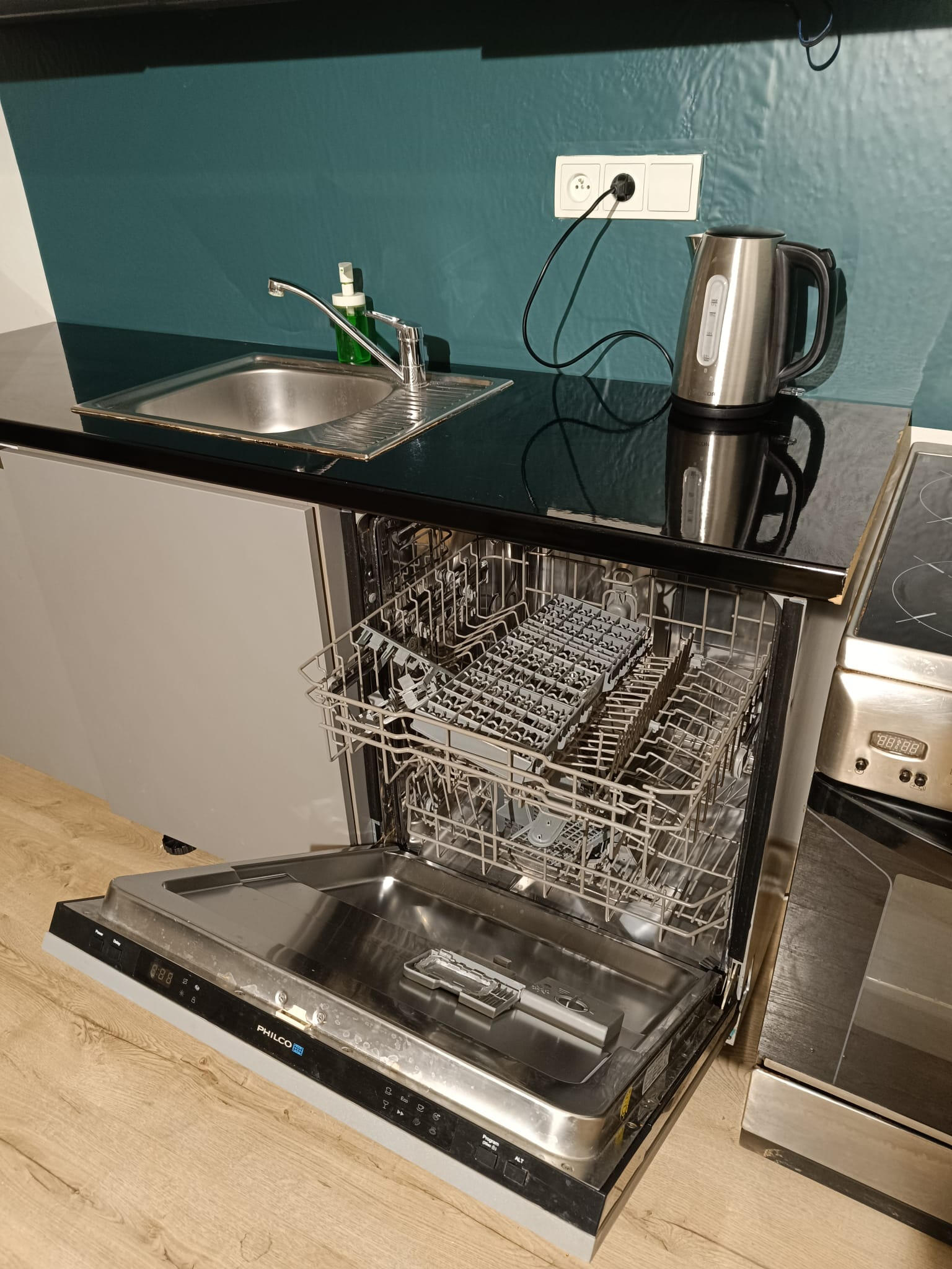 Appliances include: sofa bed (comfortable for two people), dishwasher machine, oven, fridge with freezer, washing machine, microwave oven, cattle, TV, internet, vacuum cleaner, iron. Additional appliances/ furniture can be added.